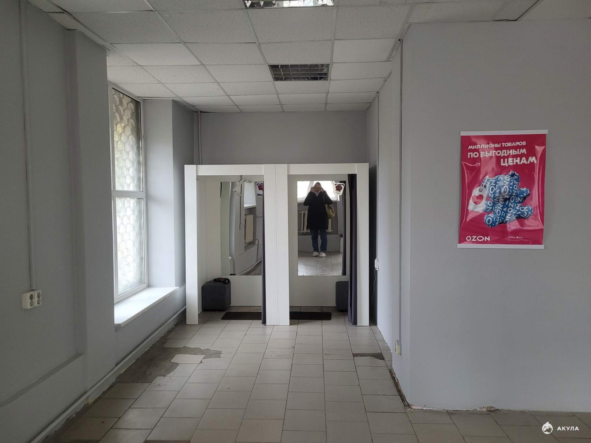 Помещение располагается на 1 этаже здания. Хорошая проходимость. Рядом городской парк и остановки общественного транспорта.