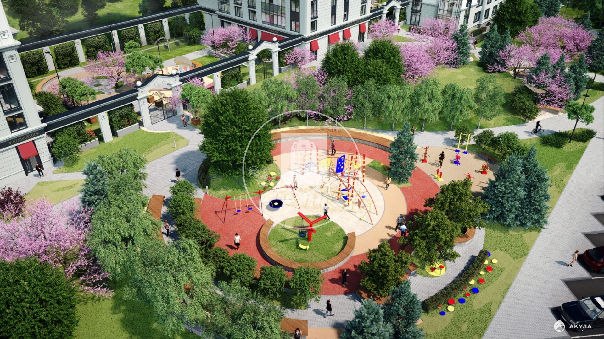 По всей огороженной территории ЖК работает видеонаблюдение для вашей безопасности и комфорта. Концепция двор без машин, живописная придомовая территория, цветущий сад, где невозможной красоты деревья и редкие растения, детские и спортивные площадки, зоны отдыха для взрослых.