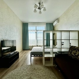 Сдается 1-к квартира 45 м2 с видом на лес в ЖК «Солнечная долина» Сдается однокомнатная квартира на 16/17 этаже в современном ЖК «Солнечная долина». Панорамные виды на лес и закаты из окна. Просторная гардеробная и застекленная лоджия. Полностью готова к комфортному...